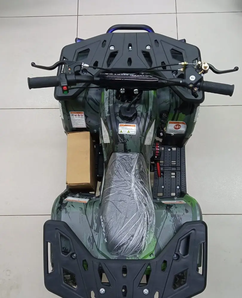 Квадроцикл оборудован достаточно мощным двигателем, который обеспечивает плавное и стабильное движение, достигая скорости до 40 км/ч. Это идеальная скорость для детей, чтобы они могли чувствовать себя уверенно и безопасно за рулём. Также квадроцикл имеет электрический старт, что значительно облегчает использование детьми.