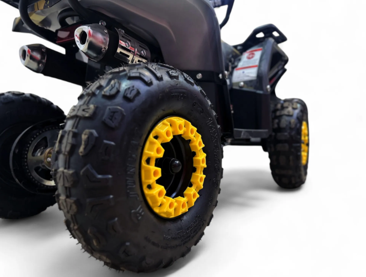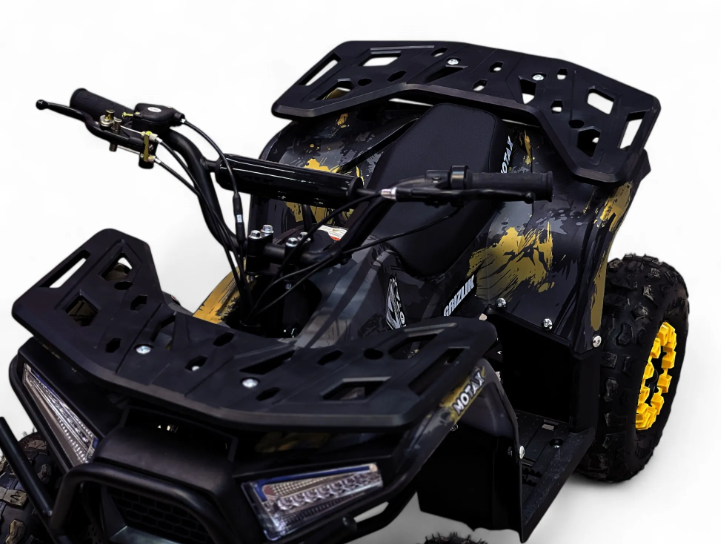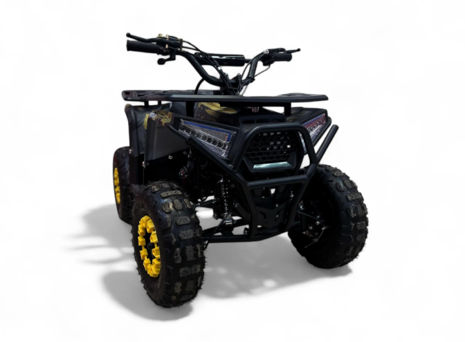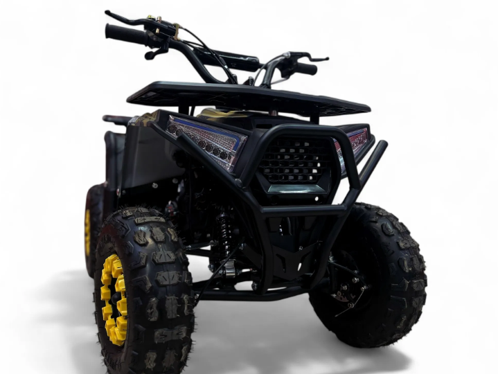 Квадроцикл оборудован достаточно мощным двигателем, который обеспечивает плавное и стабильное движение, достигая скорости до 40 км/ч. Это идеальная скорость для детей, чтобы они могли чувствовать себя уверенно и безопасно за рулём. Также квадроцикл имеет электрический старт, что значительно облегчает использование детьми.