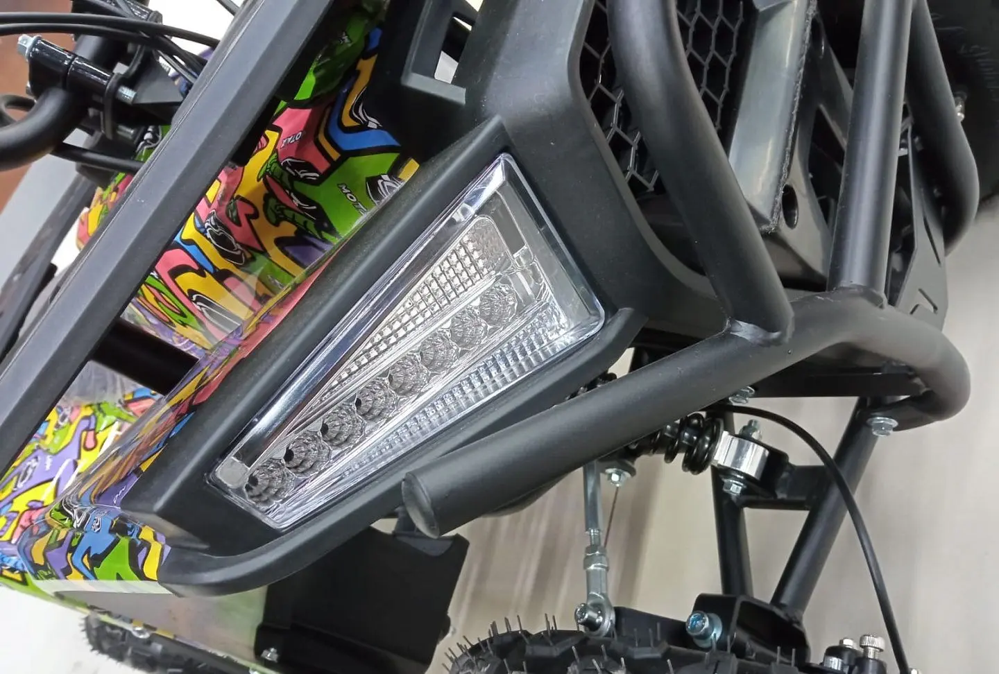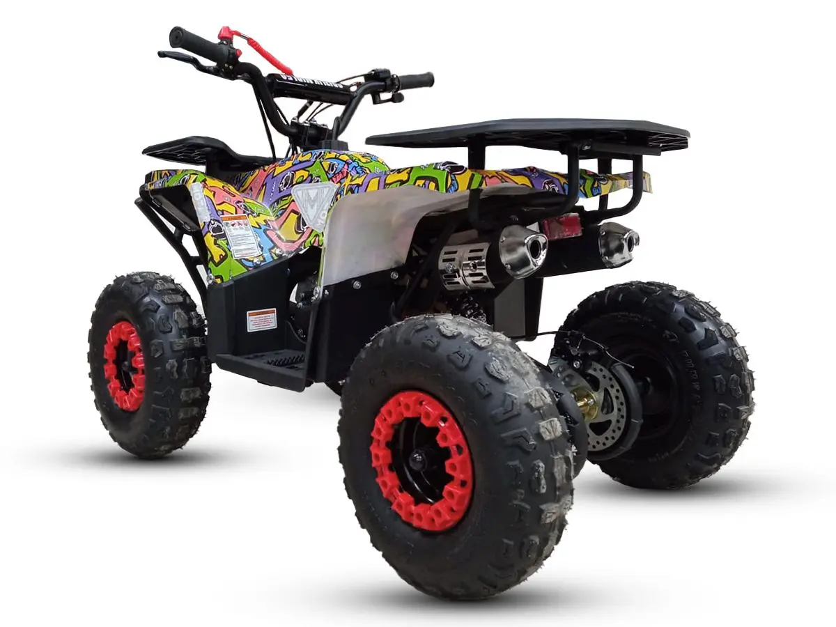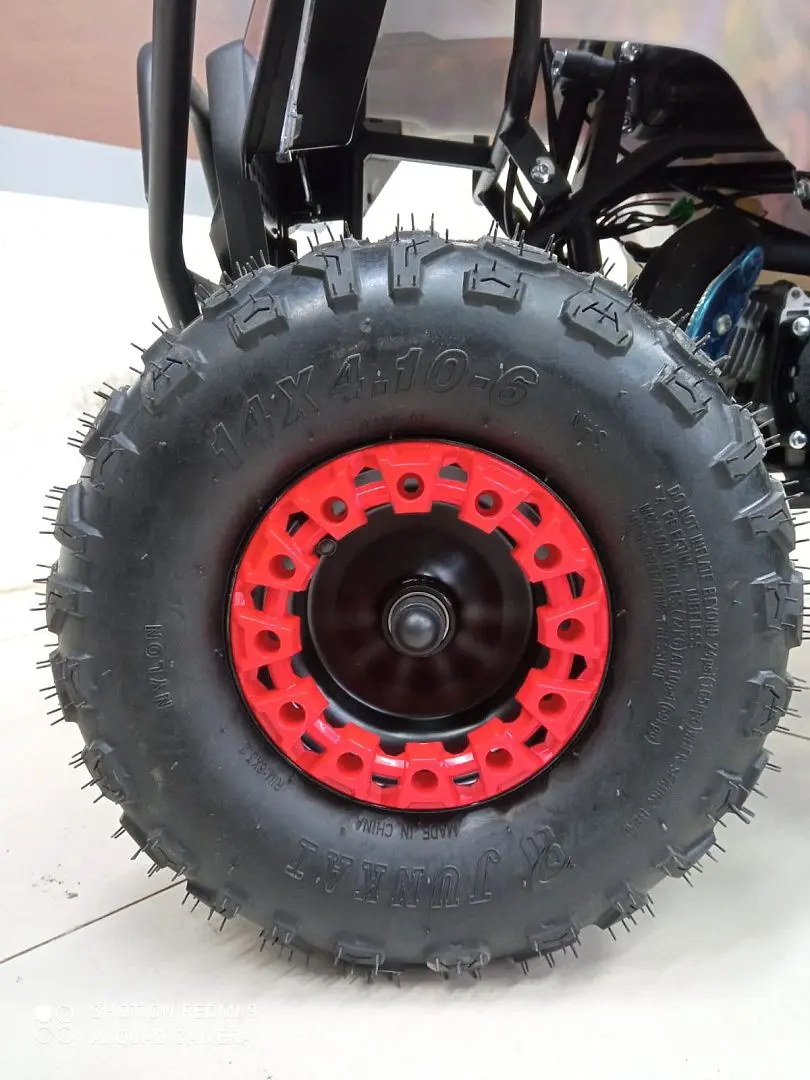 Квадроцикл оборудован достаточно мощным двигателем, который обеспечивает плавное и стабильное движение, достигая скорости до 40 км/ч. Это идеальная скорость для детей, чтобы они могли чувствовать себя уверенно и безопасно за рулём. Также квадроцикл имеет электрический старт, что значительно облегчает использование детьми.