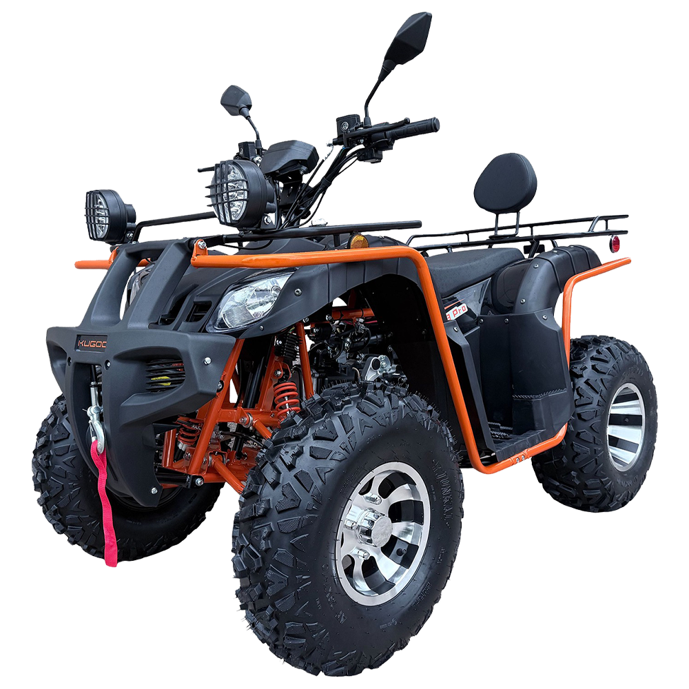 С бензиновым двигателем объемом 200 см³ и мощностью 12 кВт, квадроцикл KUGOO K3 PRO способен развивать скорость до 65 км/ч. Эта мощность позволяет легко преодолевать различные препятствия, будь то городские улицы или сложные маршруты на природе. Бесступенчатая трансмиссия CVT обеспечивает плавное переключение передач, что делает управление квадроциклом комфортным и интуитивно понятным.