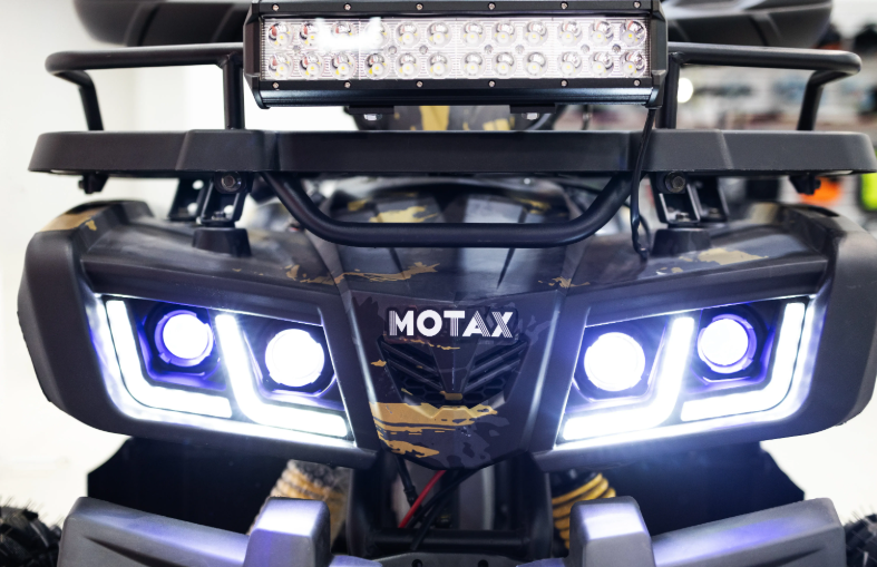 С колесной базой 1220 мм и прочной стальной рамой, MOTAX GRIZLIK T200 LUX обеспечивает отличную маневренность и устойчивость на дороге. LED-фары обеспечивают хорошую видимость в темное время суток, а спидометр позволяет следить за скоростью во время поездок, что добавляет удобства и безопасности.