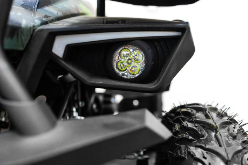 Рама из прочной стали и металлические колесные диски обеспечивают долговечность конструкции, а дорожный просвет в 55 мм позволяет легко преодолевать небольшие препятствия на пути. Этот квадроцикл отлично подходит для активного отдыха на природе и в условиях легкого бездорожья.
