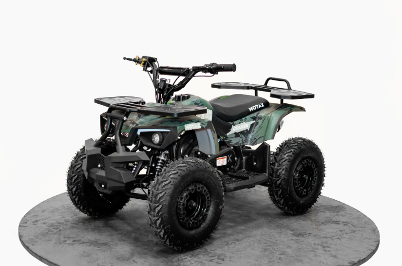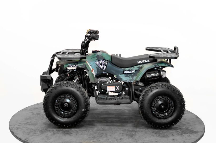 MOTAX GRIZLIK MINI ES BW предлагает множество практичных решений для хранения: передний и задний багажники позволяют удобно размещать необходимые вещи во время поездок. Хотя квадроцикл не оснащен зеркалами заднего вида или поворотниками, его простота в использовании делает его идеальным для детей, которые только начинают осваивать управление.