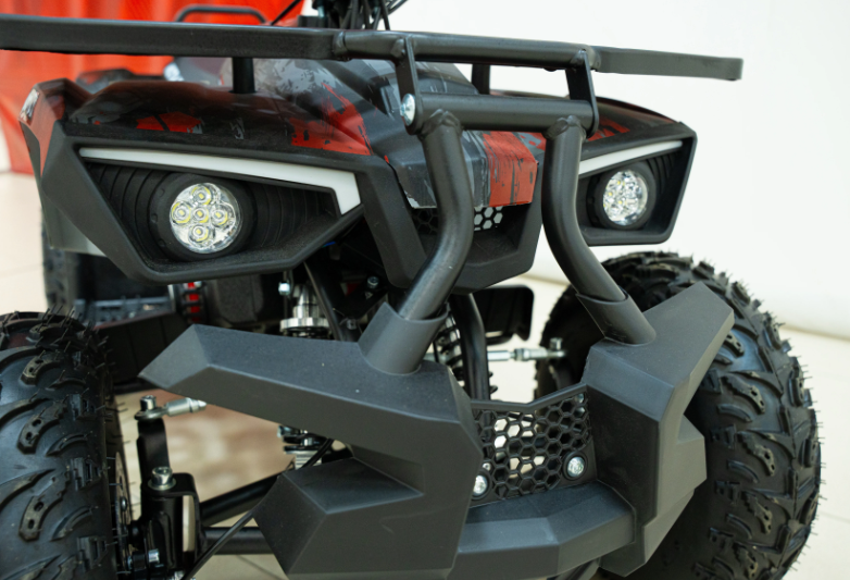 Рама из прочной стали и металлические колесные диски обеспечивают долговечность конструкции, а дорожный просвет в 55 мм позволяет легко преодолевать небольшие препятствия на пути. Этот квадроцикл отлично подходит для активного отдыха на природе и в условиях легкого бездорожья.