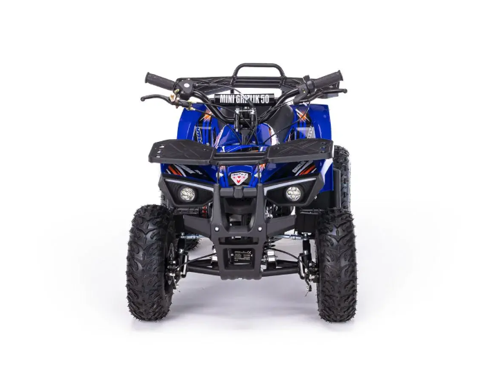 Квадроцикл MOTAX GRIZLIK MINI ES BW представляет собой замечательный выбор для детей, которые хотят попробовать себя в мире мотоспорта. С мощностью 3,5 л.с. и 2-х тактным бензиновым двигателем объемом 49 см³, он обеспечивает отличные динамические характеристики и подходит для юных гонщиков ростом от 100 до 130 см.