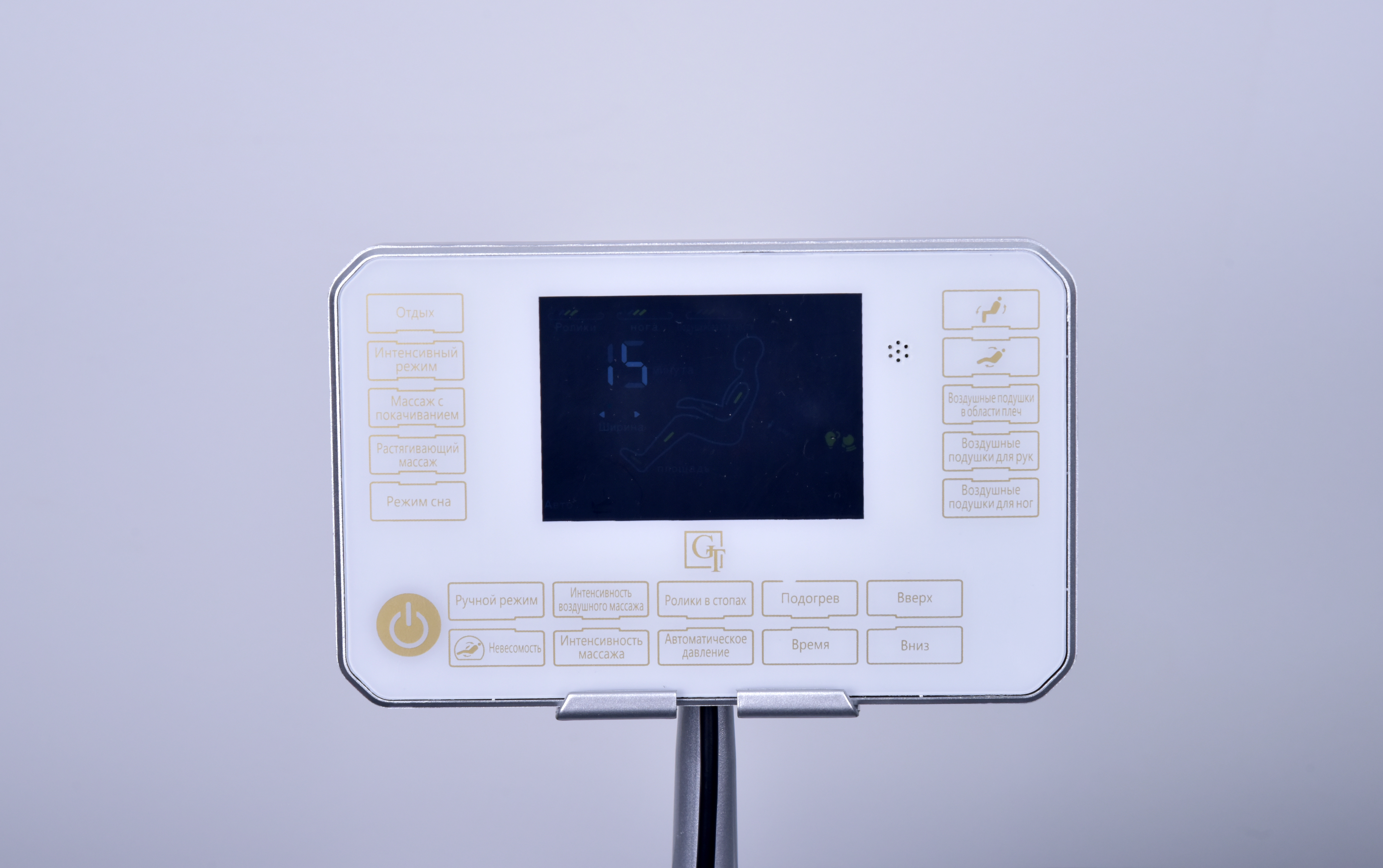 Устройство оснащено экраном, который позволяет легко управлять всеми функциями и режимами. Кресло предлагает 11 различных режимов работы, включая 5 автоматических и 6 ручных, что дает возможность выбрать наиболее подходящий вариант массажа в зависимости от ваших предпочтений.
