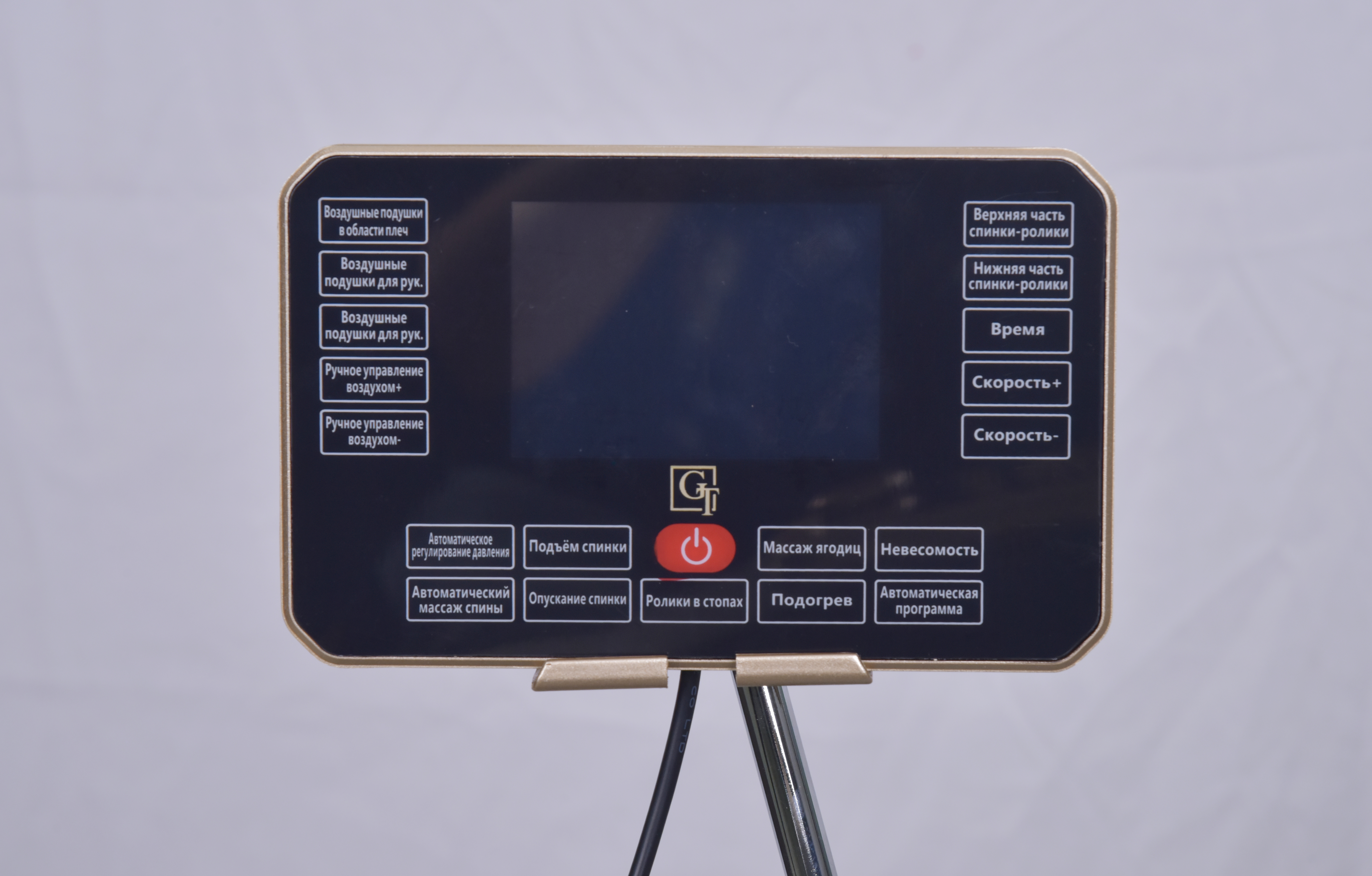 Запуск массажного кресла осуществляется одним нажатием кнопки, а центральная панель управления с горячими клавишами обеспечивает легкий доступ ко всем функциям. Подлокотники кресла также оснащены кнопками быстрого доступа, что делает управление еще более удобным и интуитивно понятным.