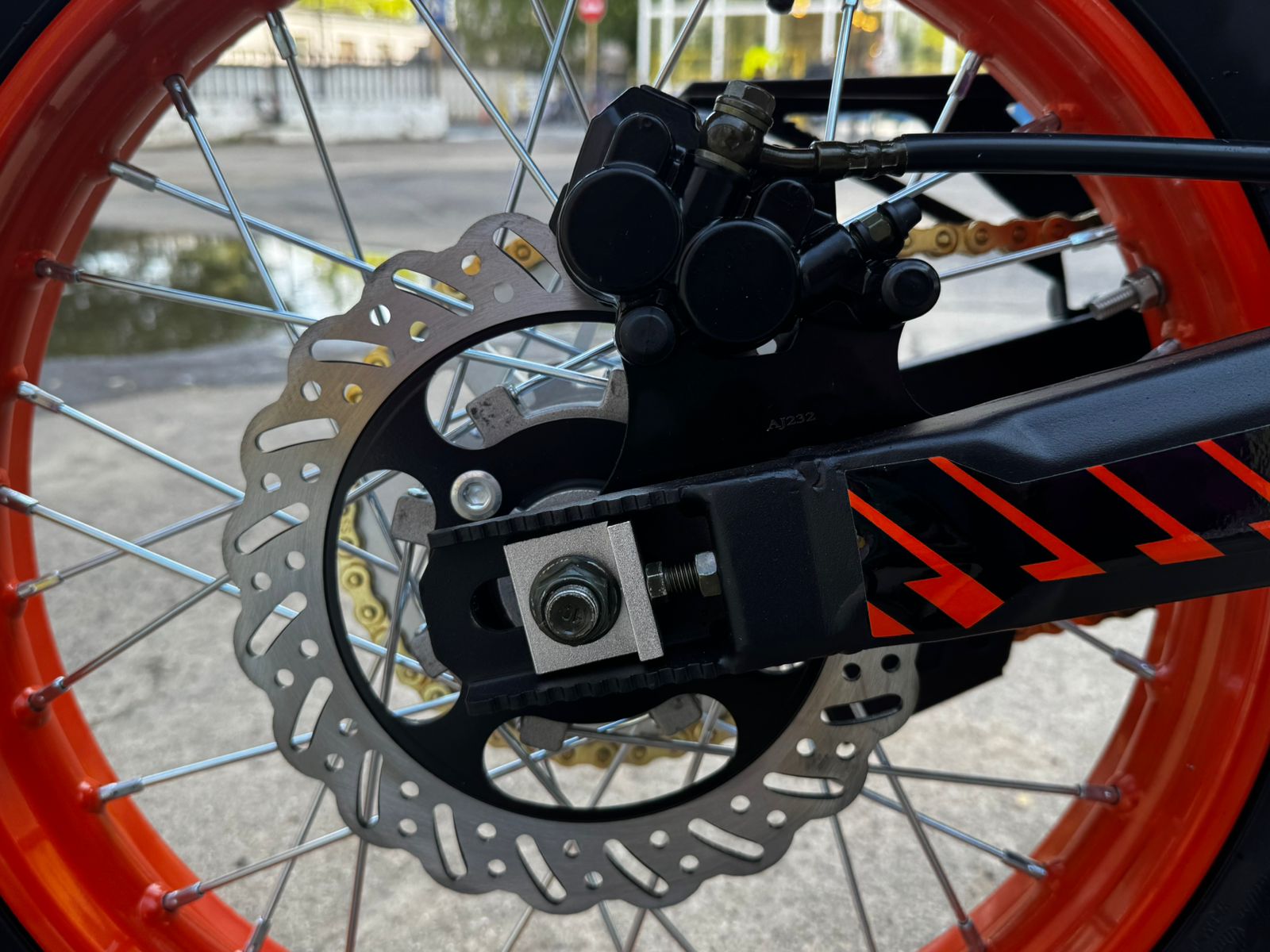 Мотоцикл оборудован гидравлическими тормозами с двумя поршнями, которые обеспечивают надежное и эффективное торможение. Это важный аспект безопасности, позволяющий быстро и уверенно останавливаться в любых условиях. Надежные тормоза делают KUGOO JL-300 отличным выбором для городских поездок и загородных приключений.