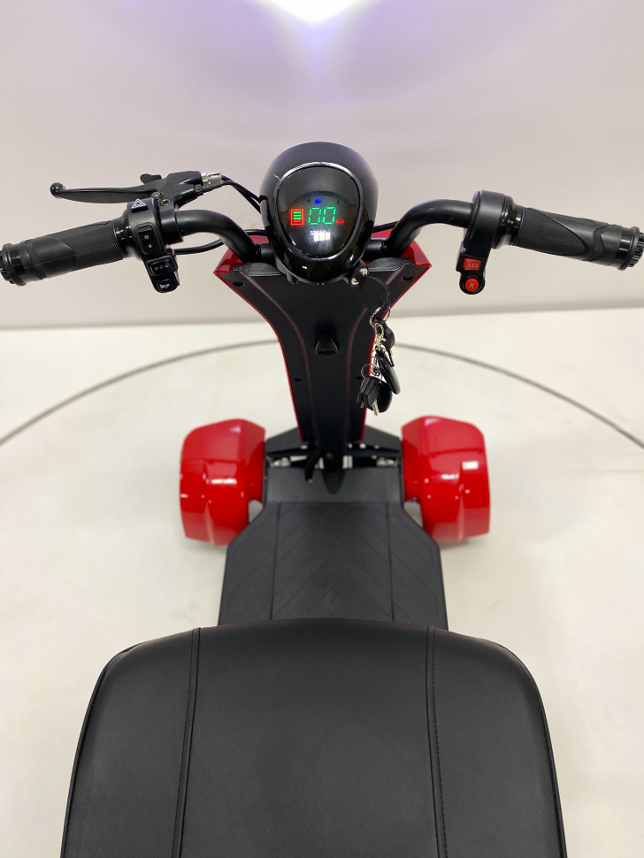 Конструкция трицикла разработана с учетом длительного комфорта пользователя: регулируемое по высоте сиденье (60 см) и эргономичная спинка обеспечивают правильную посадку и снижают усталость. Пружинная амортизация эффективно гасит вибрации от неровного асфальта и грунтовых дорог, делая каждую поездку приятной. Надежная дисковая тормозная система на задних колесах обеспечивает быстрое и контролируемое торможение в любых погодных условиях. Широкие колеса (передние 10 дюймов, задние 8 дюймов) обеспечивают отличное сцепление с дорогой и дополнительную стабильность. Дорожный просвет 85 мм защищает днище от ударов о препятствия и позволяет ездить по легкому бездорожью.