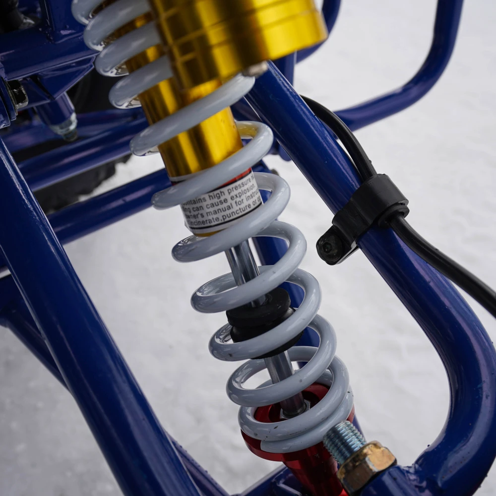 Электроквадроцикл может выдерживать максимальную нагрузку до 140 кг, что позволяет перевозить как пассажиров, так и дополнительный груз. Дисковые гидравлические тормоза обеспечивают надежное и безопасное торможение, что особенно важно при движении на высокой скорости и в сложных условиях. Это гарантирует вашу безопасность во время любых поездок.