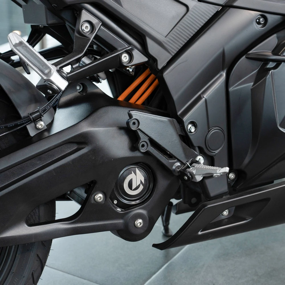 С мощностью 3990 ватт и центральным ременным двигателем, этот электромотоцикл демонстрирует отличную динамику и отзывчивость. Максимальная скорость составляет 165 км/ч, что позволяет легко обгонять другие транспортные средства и наслаждаться адреналином на дороге. Благодаря батарее Li-ion емкостью 96V120Ah, вы можете проехать до 220 км на одном заряде, что делает его идеальным для длительных поездок без частых остановок на зарядку.