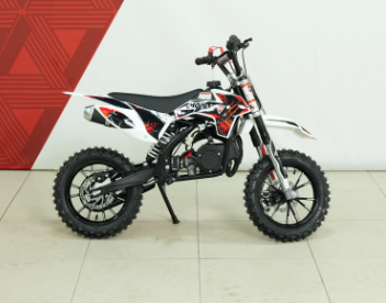 Данный миникросс имеет задний привод и дисковые тормоза как спереди, так и сзади, что обеспечивает надежное торможение и безопасность во время движения. Высота сидения составляет 580 мм, что делает его удобным для детей с ростом от 100 до 130 см, позволяя им уверенно управлять мотоциклом.
