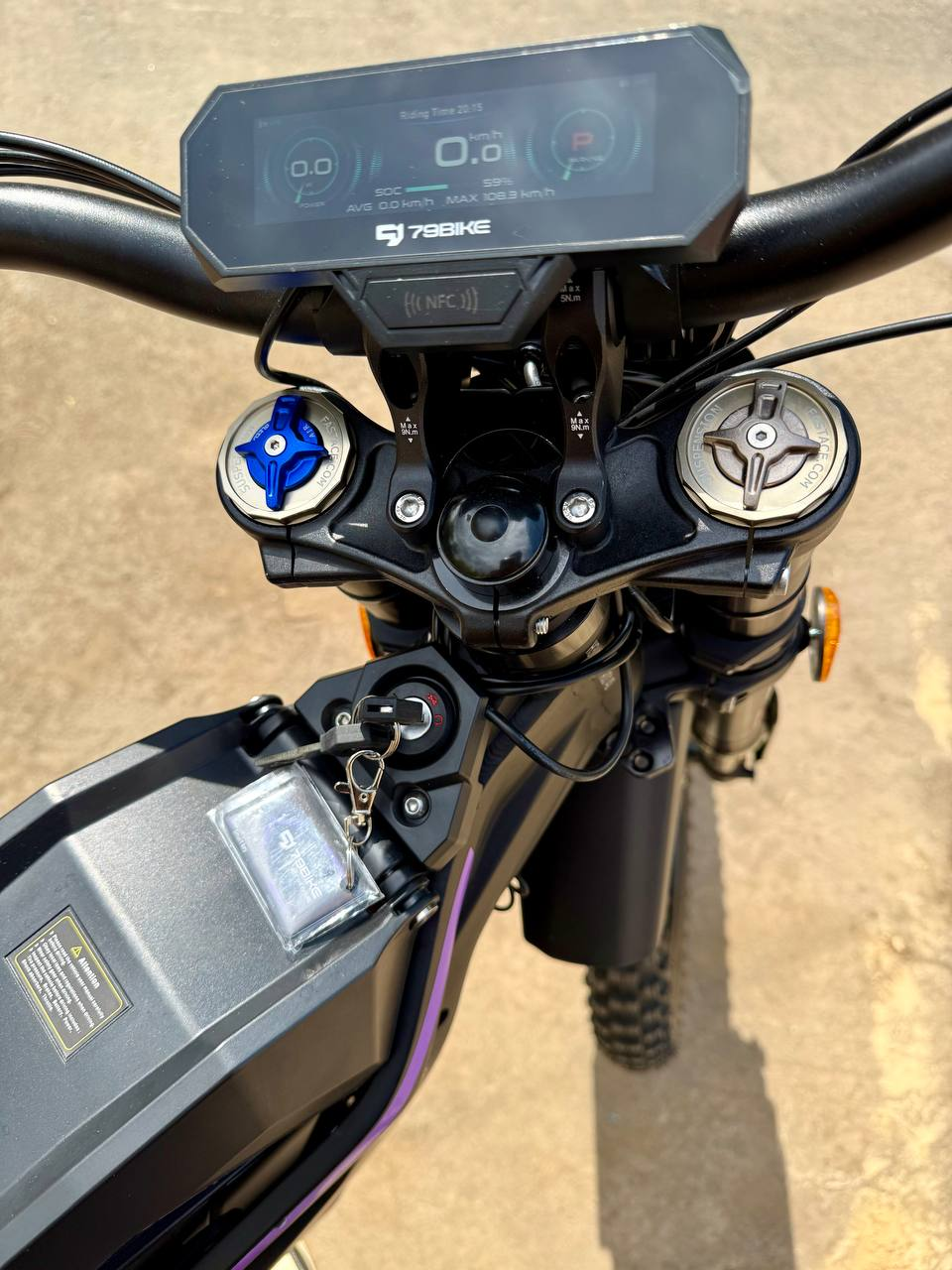 Электромотоцикл 79BIKE-Falcon Pro — это мощный электрический байк, идеально подходящий для длительной интенсивной езды по бездорожью. Модернизированный контроллер нового поколения с увеличенной пиковой мощностью до 10 000 Вт и инновационная полимерная батарея 72V35Ah обеспечивают отличные характеристики и производительность.