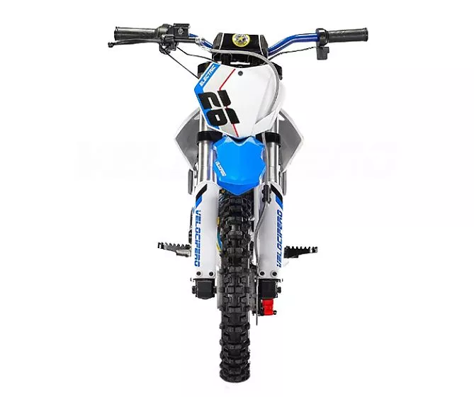 KIDS BIKE 14-12 - детский электробайк для юных любителей скоростной езды и ярких приключений в возрасте от 8 до 12 лет. Стальная рама электромотоцикла дополнена резиновыми колесами 14/12, передней гидравлической телескопическрй вилкой, задним гидравлическим амортизатором. Стильный и функциональный электромотоцикл имеет 3 режима скорости - Начинающий, Эксперт, Спорт