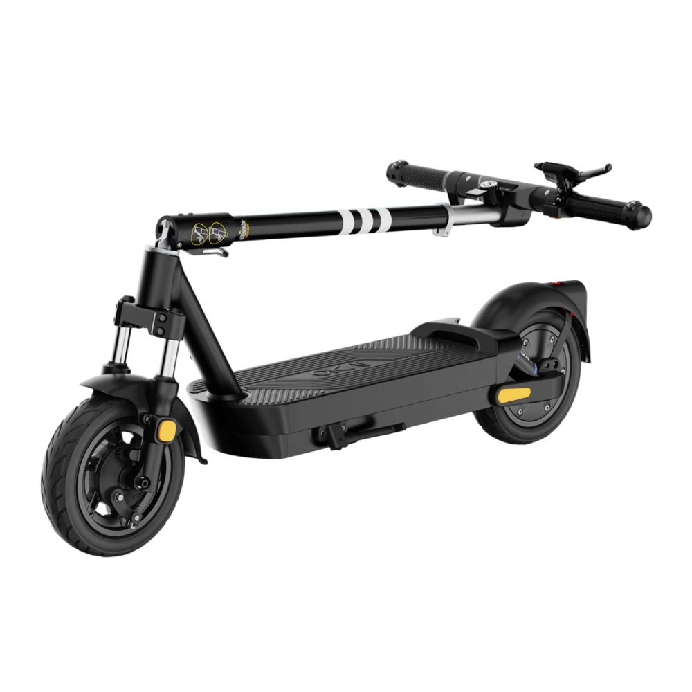 Складная конструкция позволяет легко складывать и раскладывать самокат, что делает его удобным для хранения и транспортировки. В разложенном виде его размеры составляют 117.5 × 57.51 × 123.01 см, что позволяет без труда помещать его в багажник автомобиля или хранить в квартире. Ширина руля 57.51 см обеспечивает комфортное управление, а клиренс в 90 мм добавляет стабильности при езде по неровным поверхностям.