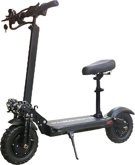 Модель оснащена прочной амортизационной вилкой с двумя амортизаторами для смягчения наезда на ямы и кочки. Полноприводный электросамокат, мощность каждого мотора составляет 1000 Вт подается аккумулятором 23 Ач с напряжением 48 В. Полного заряда батареи хватит на прохождение пути в 60 км. Широкая платформа для ног обеспечивает удобное положение ног при поездках и снижает нагрузку на позвоночник. Райдеру не составит труда набрать скорость 60 км/час за короткое время. Тормозная система состоит из дисковых тормозов, расположенных спереди и сзади. На руле расположен ЖК-дисплей и оригинальный спидометр для отслеживания основных параметров тс.