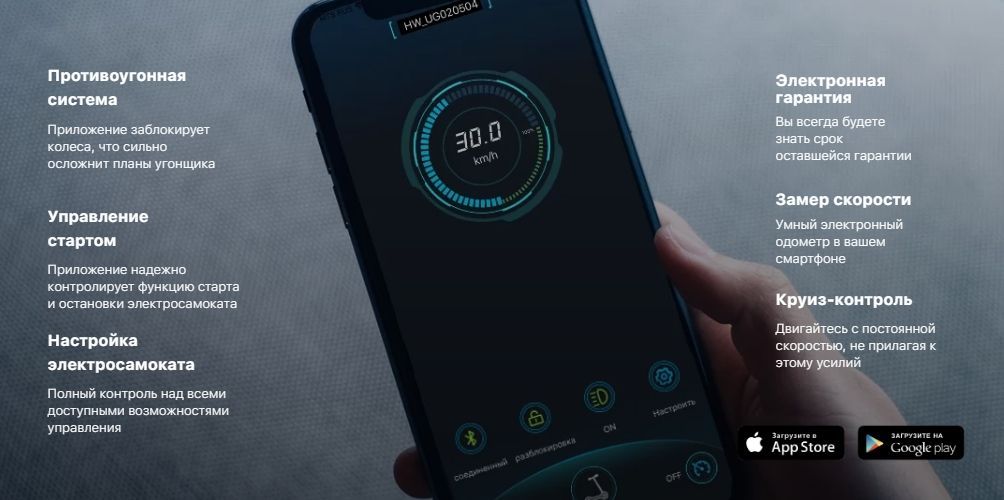 - В электросамокате есть функция круиз-контроля (поддерживает набранную скорость).