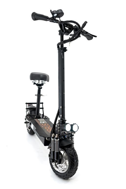 Электросамокат Currus R10 оснащен двойными амортизаторами спереди и двумя большими пружинами сзади. Они хорошо справляются с неровностями и дорожными препятствиями.