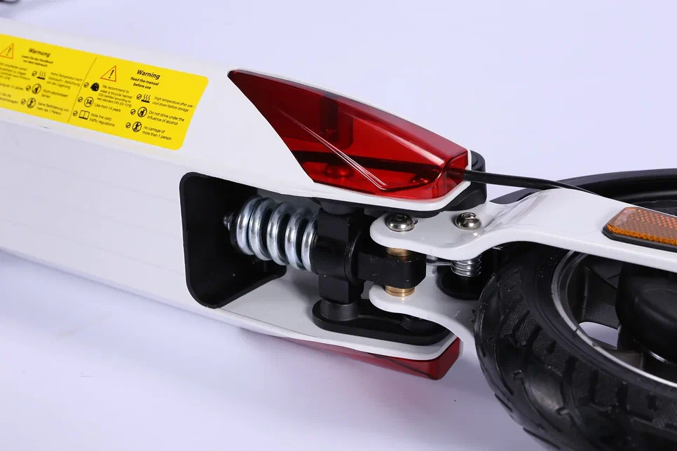 Электросамокат оснащен двухподвесной амортизацией, что обеспечивает комфортную езду по неровным дорогам. Привод на переднее колесо обеспечивает отличную управляемость и стабильность во время движения.