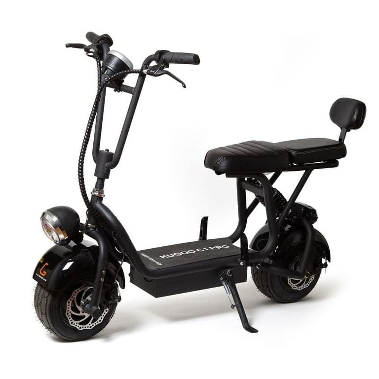 Электросамокат KUGOO C1 Pro | Двойное мягкое сиденье и широкая дека позволяют с комфортом разместиться вдвоем. Куго С1 Про выдерживает до 160 кг нагрузки. Разгоняется до 60 км/ч.