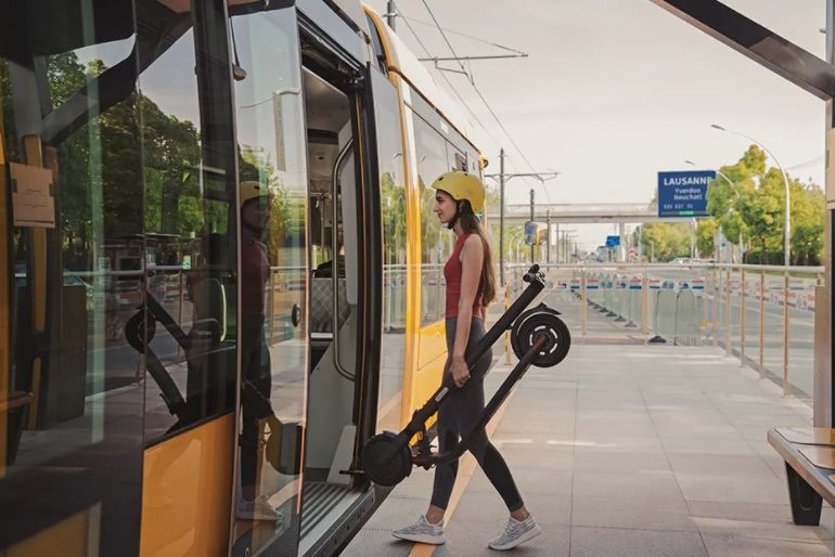 Ninebot E45 оснащён модернизированным механизмом складывания, позволяющим сложить самокат одним нажатием на педаль. Вес около 16 кг, простое вытягивание и переноска одной рукой. Легко переносить на лифтах.