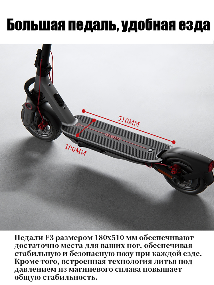 Выбирая Ninebot Kickscooter F3, вы получаете стильный и функциональный электросамокат, который сделает ваши поездки более комфортными и увлекательными.
