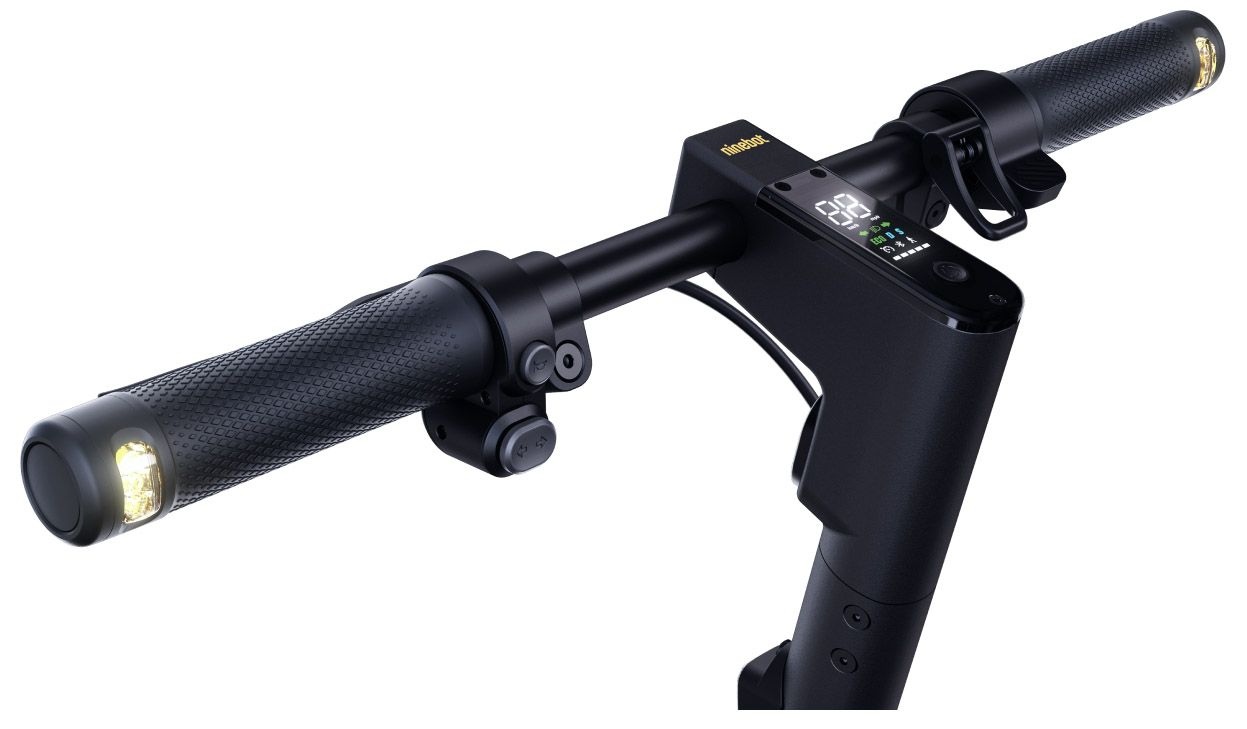 Дизайн руля и платформы для ног были разработаны с учетом эргономики и комфорта пользователя. Руль имеет оптимальную форму и угол наклона, что обеспечивает удобное расположение рук и минимизирует нагрузку на запястья. Рукоятки сделаны из термопластичной резины, она обеспечивает крепкий хват, приятна на ощупь, имеет хорошую износостойкость и легко чиститься. Дисплей почти не претерпел никаких изменений. Немного отличаются места крепления, а также немного тусклее сам экран, поэтому под прямыми солнечными лучами с него хуже читается информация. Платформа для ног достаточно просторна и обеспечивает комфортное положение ног во время поездки. Конечно же, MAX G2 оснащен удобной подножкой, которая облегчает парковку и хранение самоката в вертикальном положении. Также, устройство оснащено новым задним крылом, которое отличается не только новой схемой крепления, но и более интересным и привлекательным дизайном. Оно специально разработано таким образом, чтобы предотвращать зацепление при скатывании самоката с бордюра или других препятствий.