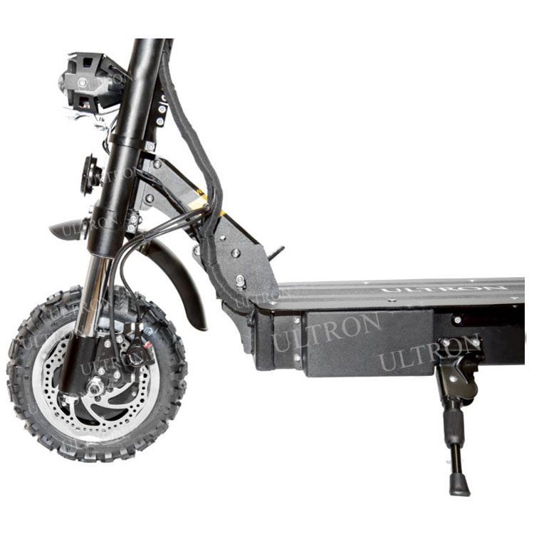 Данная модель является одной из самых мощных в ассортименте компании Ultron. Высокие характеристики обеспечиваются наличием двух электромоторов. Максимальная скорость достигает 85 км/ч. Этого достаточно для быстрого передвижения по дорогам общего пользования. Устройство отличается нестандартной вилкой переднего колеса. Также в конструкции присутствует сиденье и подножка для парковки.