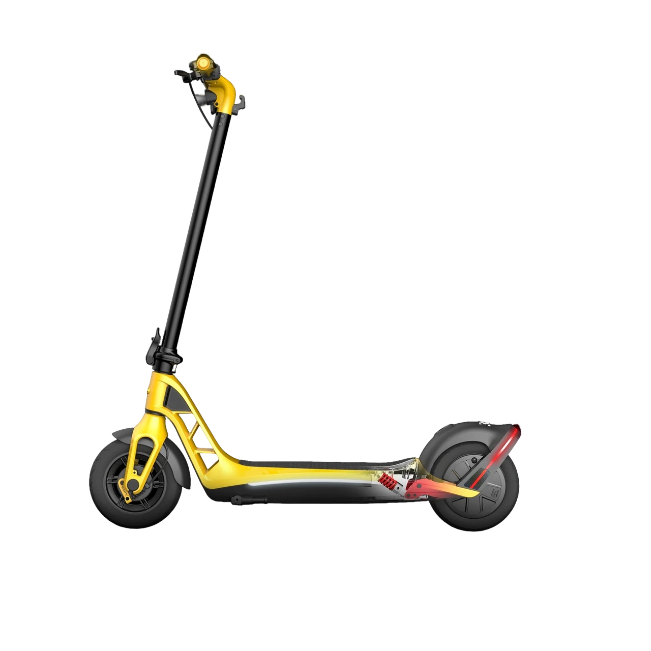 Колеса диаметром 10 дюймов с качественными покрышками обеспечивают отличную устойчивость и комфортное преодоление стыков асфальта и мелких выбоин. Задний привод гарантирует хорошее сцепление с дорожным покрытием и уверенное поведение при ускорении даже на мокром асфальте. Максимальный преодолеваемый угол наклона составляет 18 градусов, позволяя без труда подниматься на мосты и эстакады.