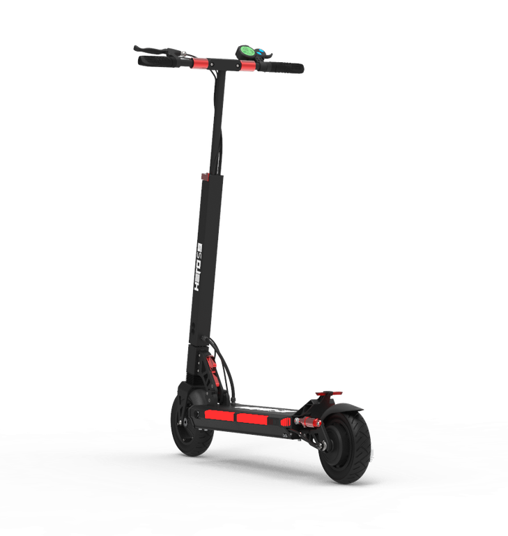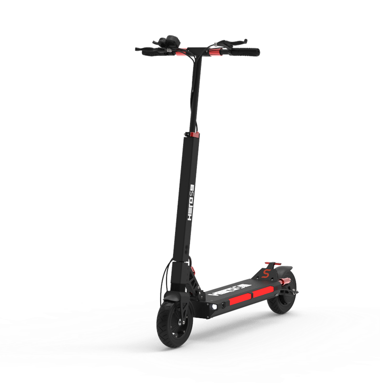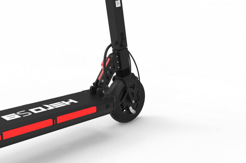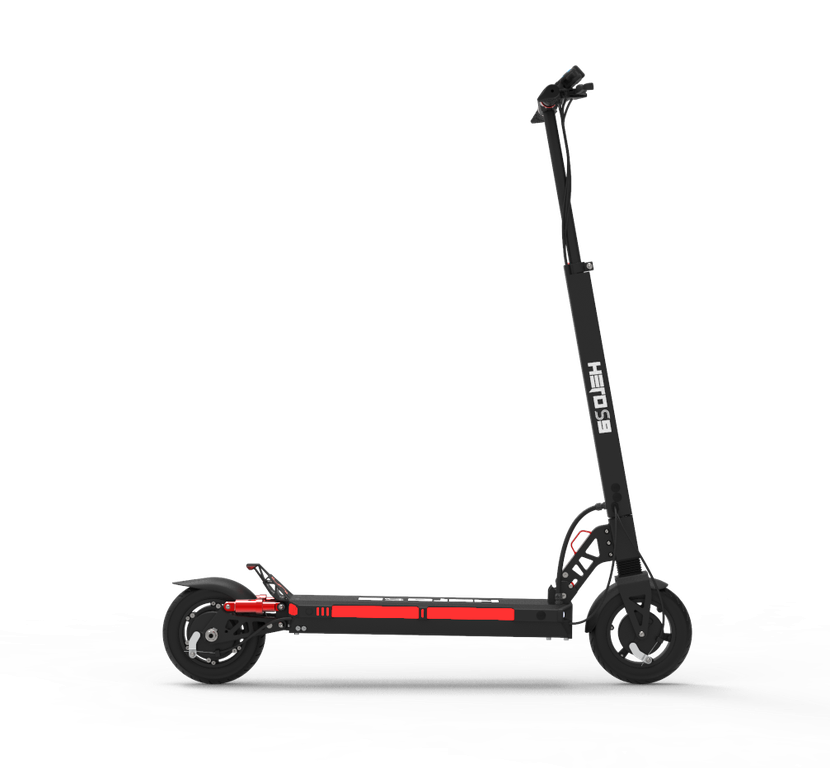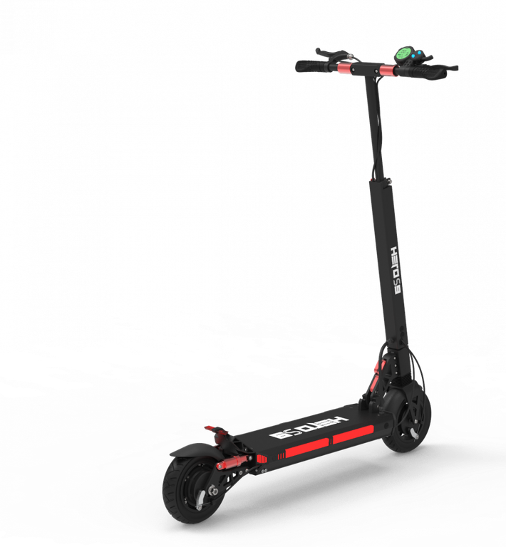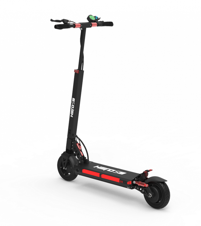 - Электросамокат Hero S9 можно легко и быстро сложить. Для этого нужно установить минимальную высоту руля, опустить рукоятки, прижать рулевую стойку к деке, потянув за рычаг внизу стойки. В сложенном виде самокат довольно компактный, поэтому его можно хранить дома, а также брать с собой в общественный транспорт, не потревожив других пассажиров.