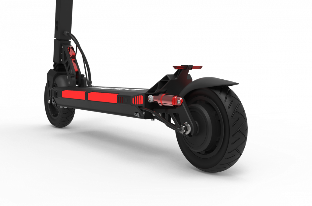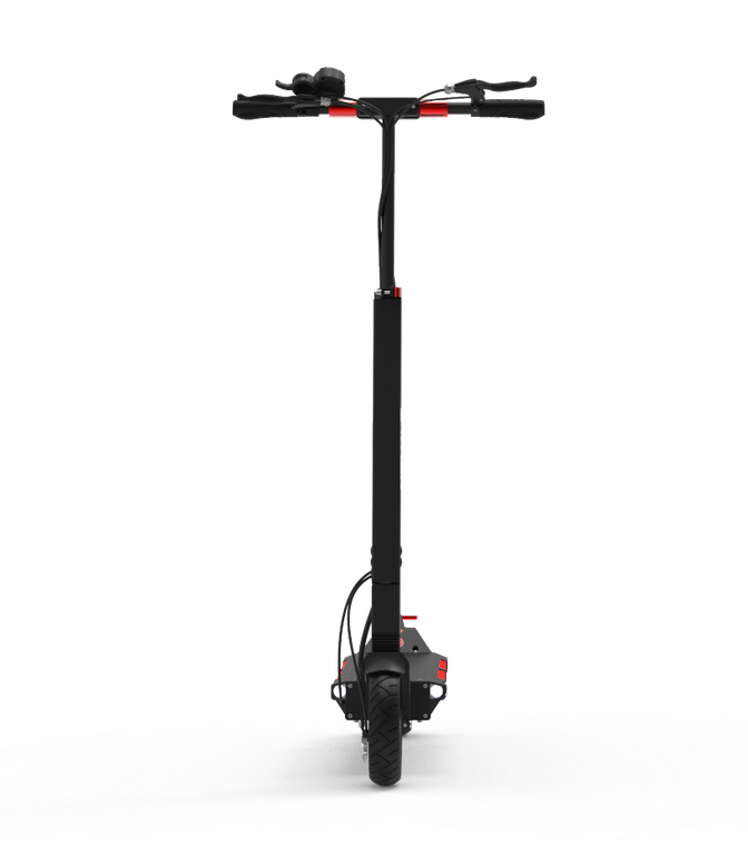 - Для удобной транспортировки разложенного самоката предусмотрена специальная ручка, расположенная над задним крылом. Если взять электросамокат за рулевую стойку и за эту ручку, то его удобно можно перенести, например, по небольшой лестнице или через препятствие.