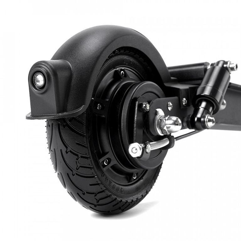 - Новый электросамокат Joyor F5+ имеет не только переднюю подвеску с амортизатором, но и двойную заднюю подвеску.