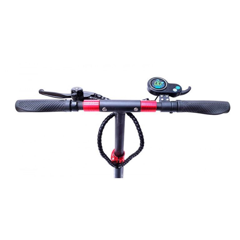 - Чтобы оставить электросамокат в вертикальном положении, можно воспользоваться специальной парковочной подножкой.