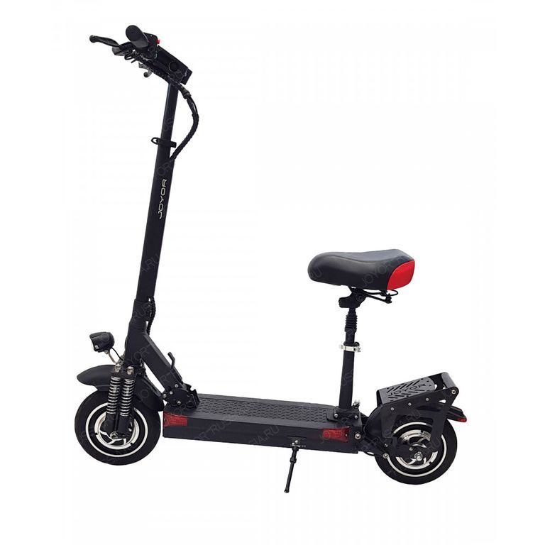 - Электрический складной самокат Joyor Y10S имеет передний и задний дисковый тормоз, а так же усовершенствованную двойную переднюю подвеску.