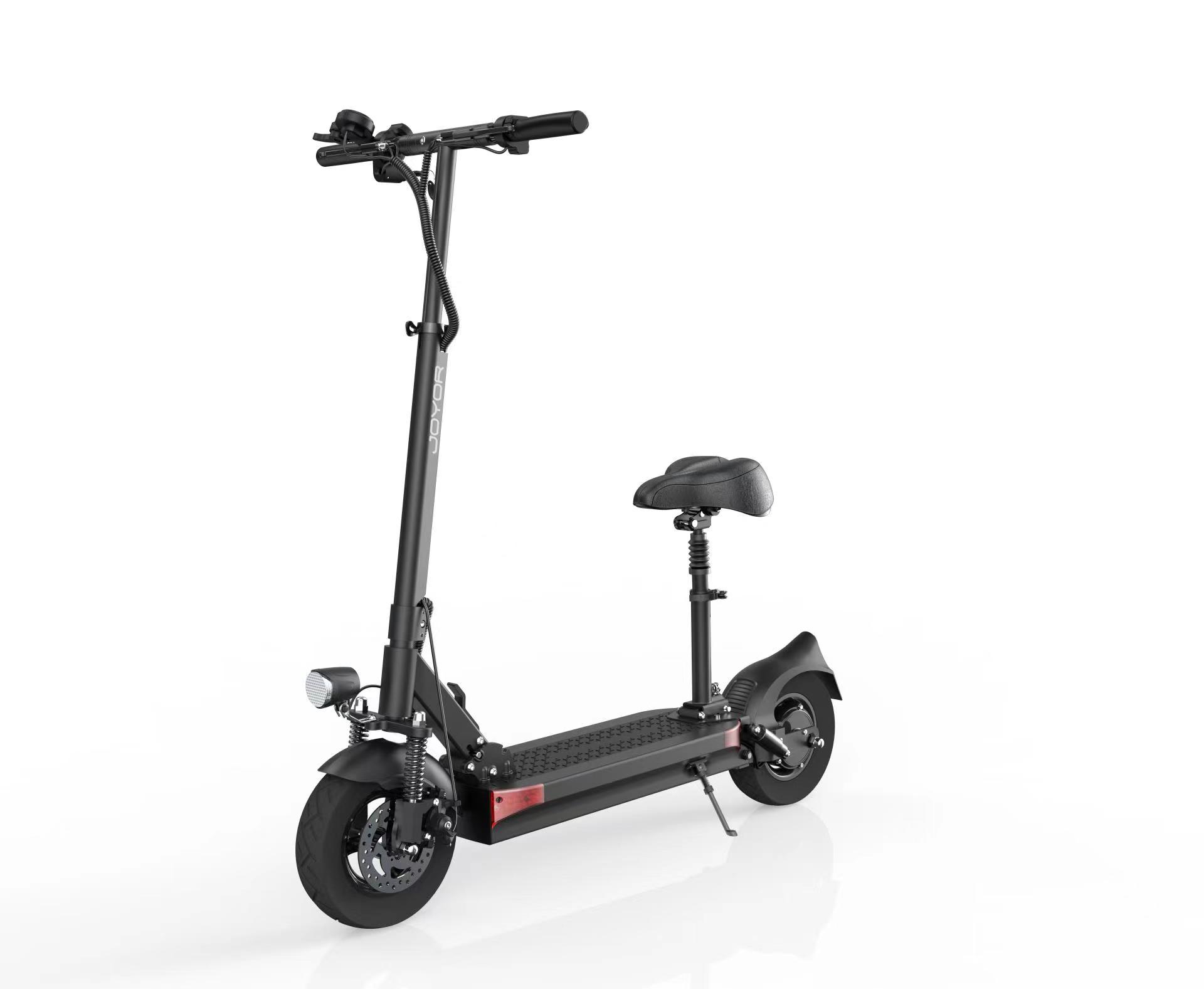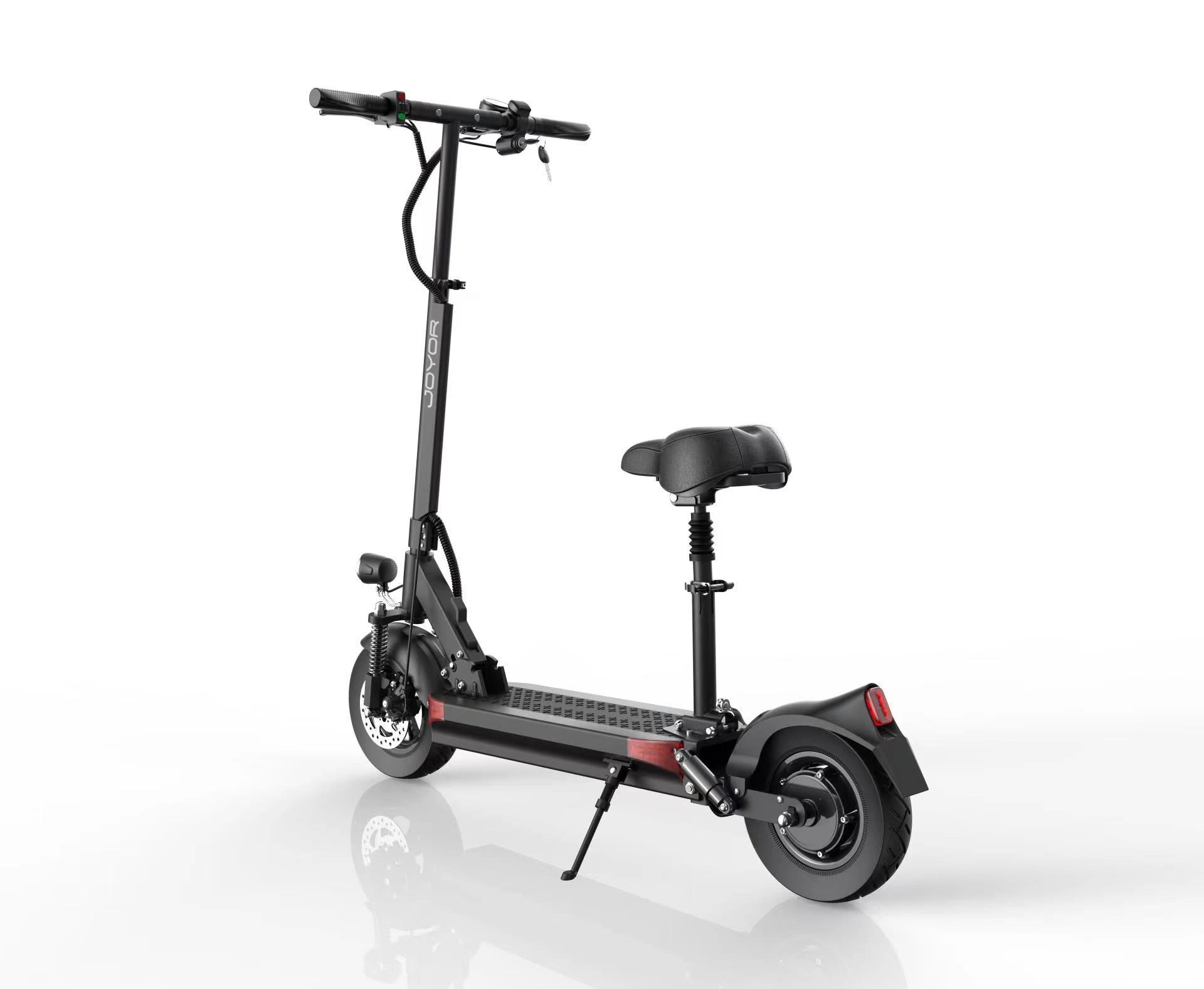 - Для максимального комфорта во время поездки к электросамокату Джоер Y5S можно прикрепить мягкое сиденье, оснащенное амортизаторами и регулируемое по высоте.