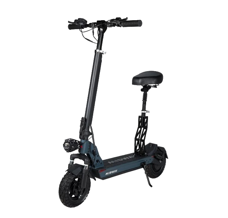 MIDWAY TANK Plus оснащён амортизацией спереди и сзади, что значительно повышает комфорт при езде по неровным поверхностям. Наличие сиденья добавляет удобства во время длительных поездок, позволяя расслабиться и наслаждаться поездкой.