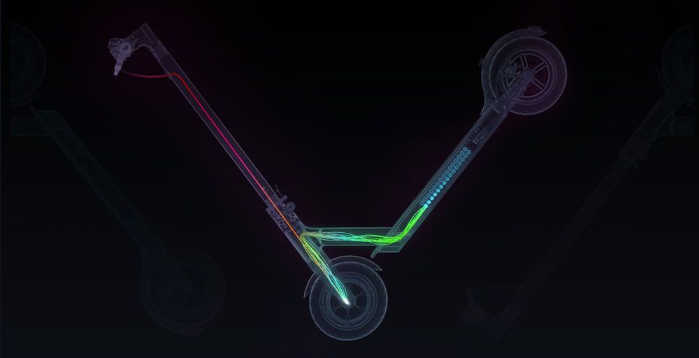Тормозная система в этой модели самоката подобна автомобильной. Передний рекуперативный тормоз подзарядит батарею, а задний дисковый обеспечит быструю остановку.