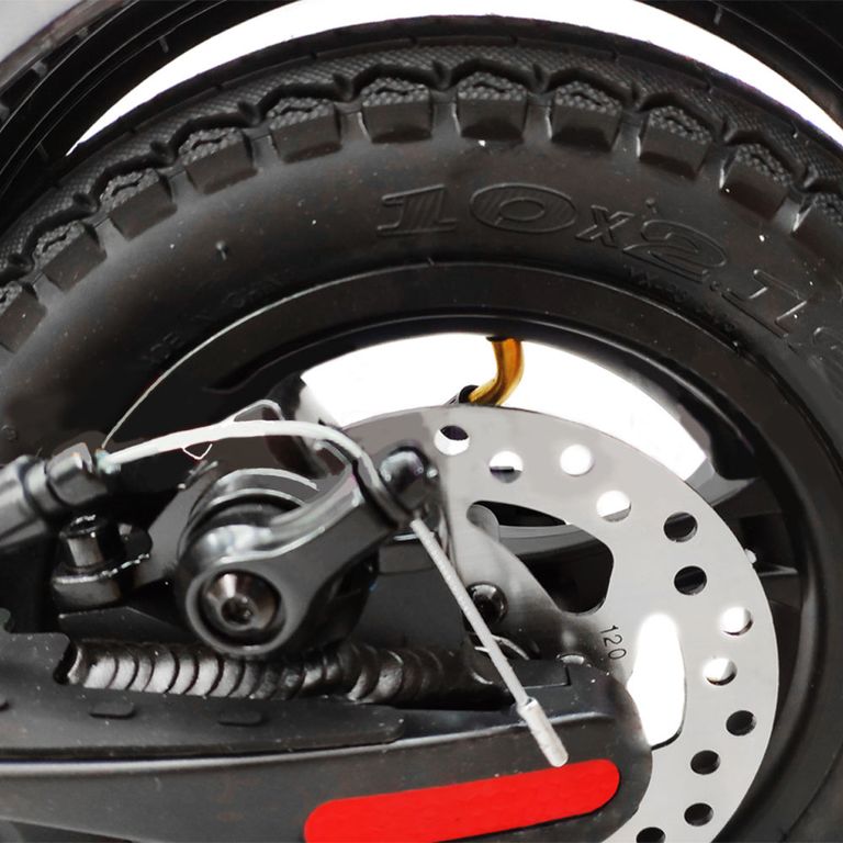 - 10-дюймовые накачиваемые покрышки сгладят неровности на поверхности, а увеличенный клиренс (15 см) позволит не волноваться о кочках и других препятствиях на дороге, потому что все важные детали будут целы.