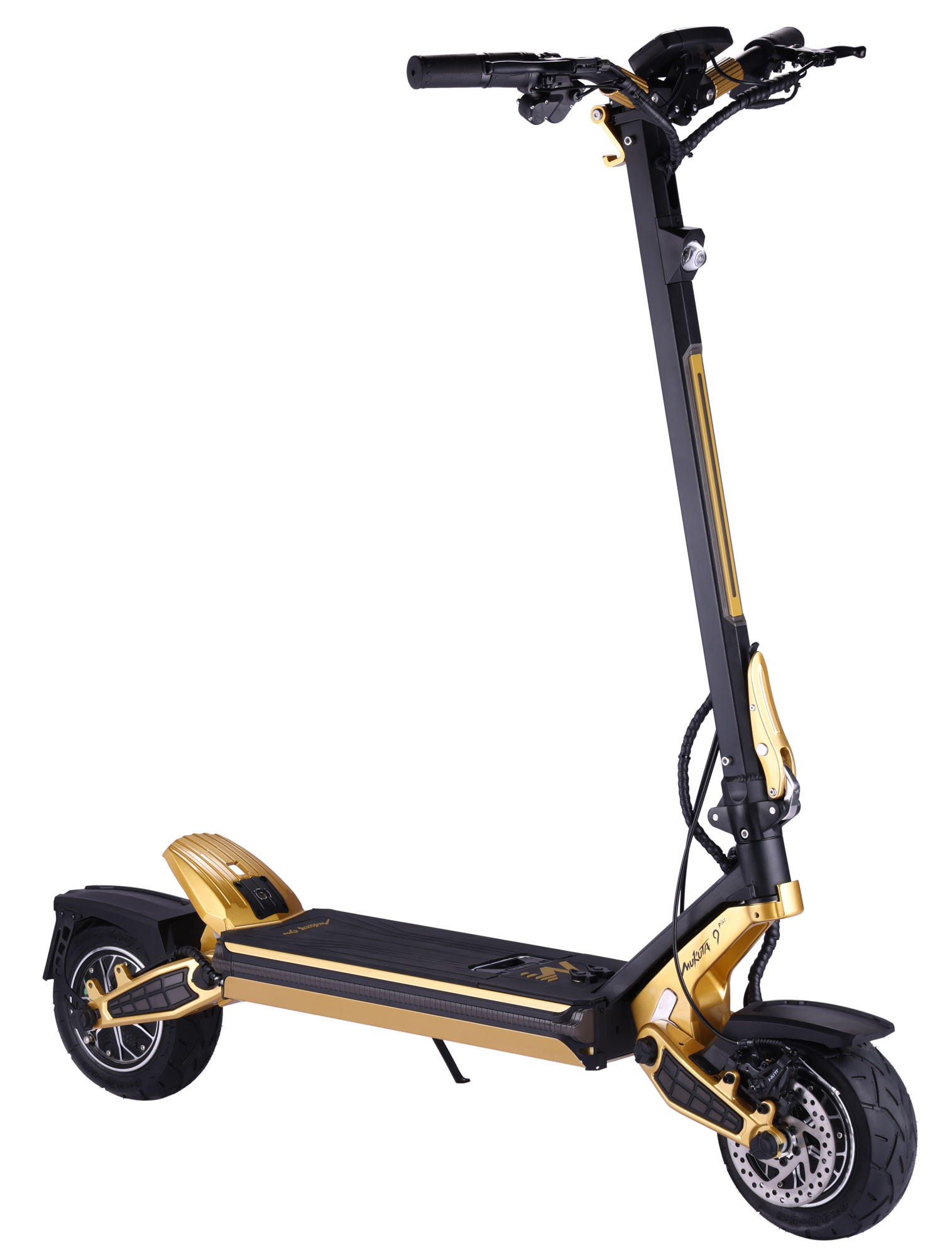 Mukuta 9 Plus оснащён надувными колесами диаметром 9 дюймов, что обеспечивает отличную амортизацию и комфорт во время езды. Гидравлические тормоза обеспечивают надежное торможение, а наличие амортизаторов повышает уровень комфорта на неровных поверхностях.