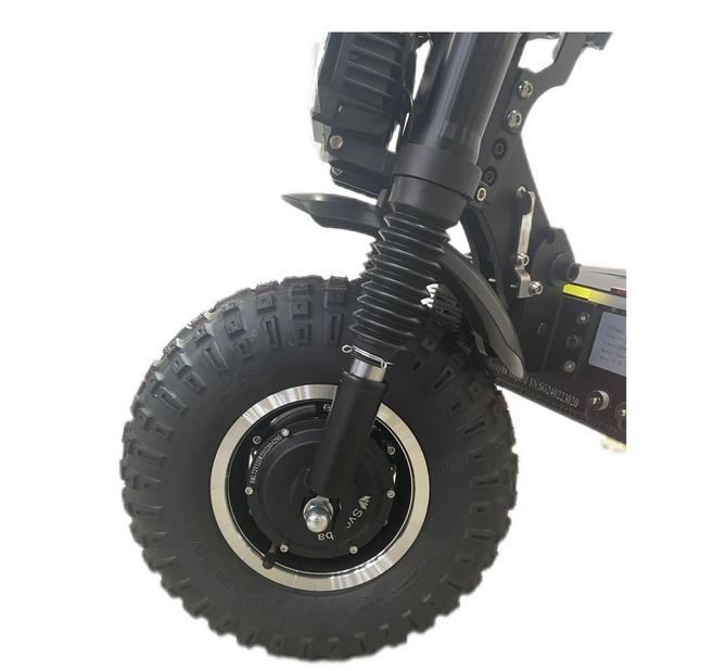 Клиренс в 17 см обеспечивает хорошую проходимость, а алюминиевая рама делает самокат легким и прочным.