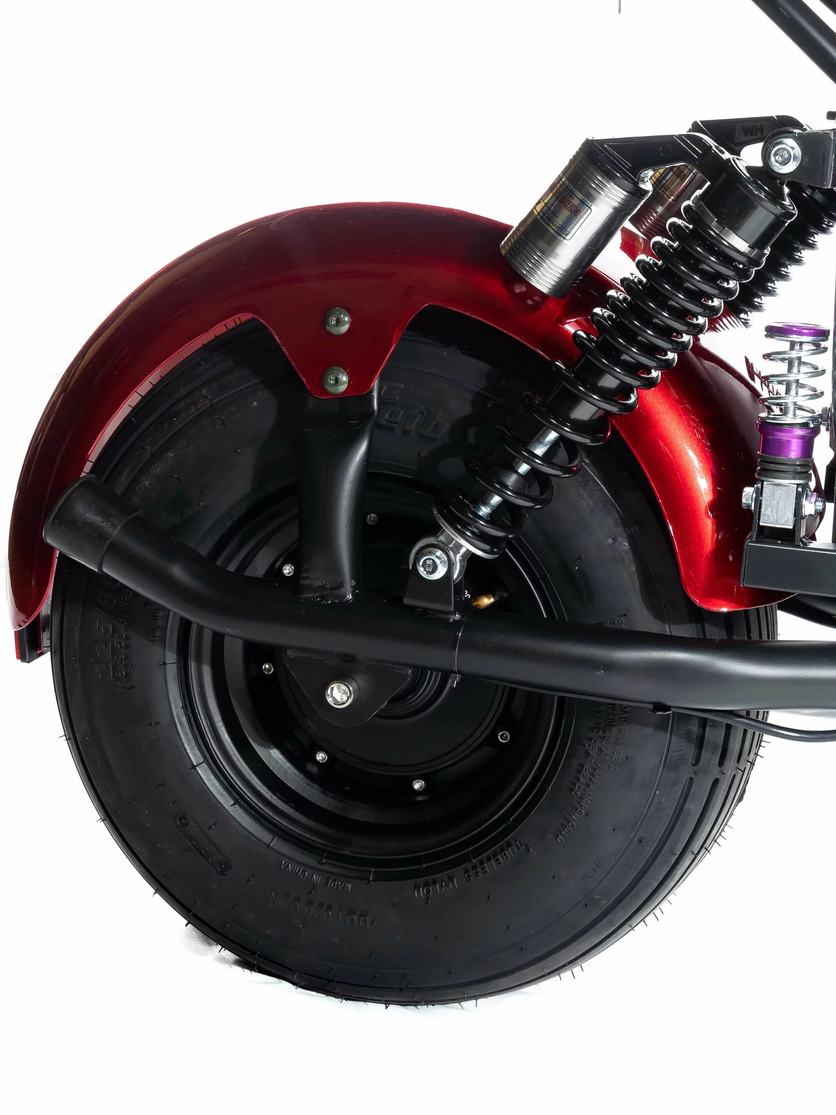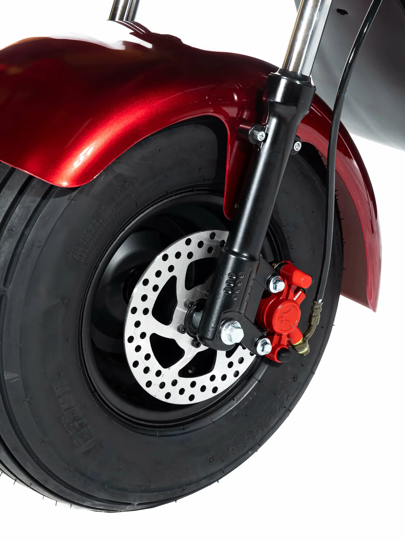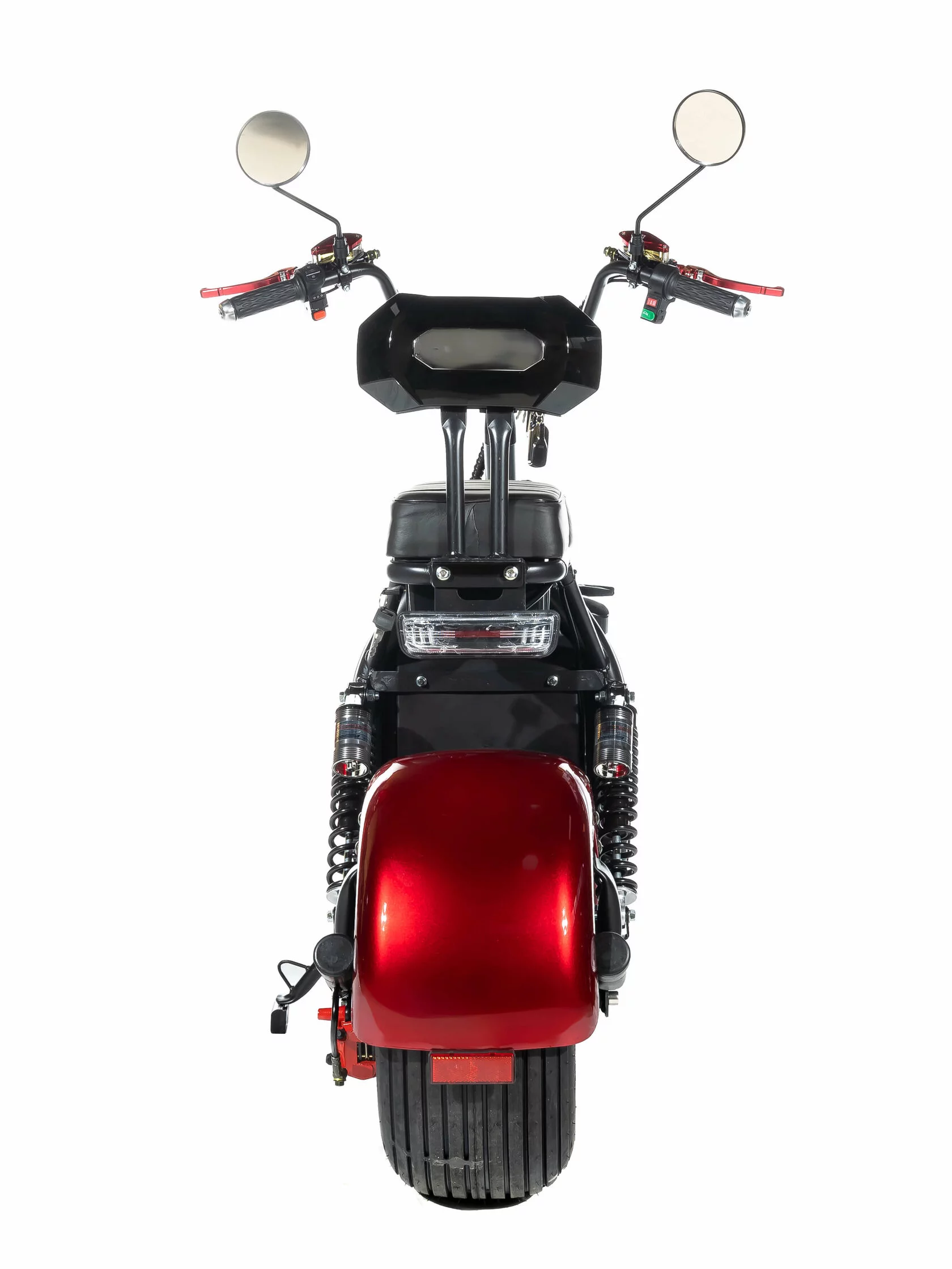 Энергоэффективный (КПД свыше 90%) электроскутер Citycoco 2000W с двумя сиденьями обеспечит быструю и безопасную поездку благодаря мощному двигателю, широким пневматическим колесам, надежным амортизаторам и дисковым тормозам на обоих колесах. На руле есть бортовой компьютер, который позволяет узнать всю необходимую информацию о движении. Есть в разных расцветках.