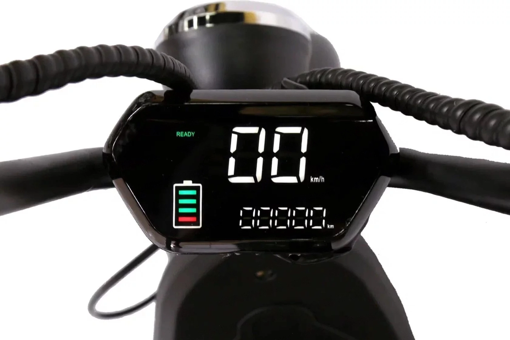 Наличие яркой светодиодной фары. Мощное мотор колесо позволяет двухместному электроскутеру развивать скорость до 45 км/ч. Не беспокойтесь о комфорте и безопасности – модель оснащена дисковыми тормозами, амортизаторами.