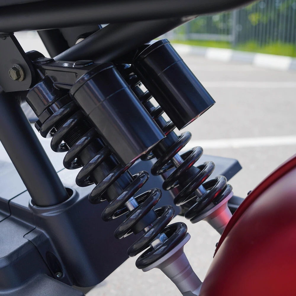 Мощность в 3000 Вт — это цифра, которая обретает смысл только в движении. Благодаря особенностям электропривода, полный крутящий момент доступен с первого оборота колеса. Это означает не просто быстрый разгон до заявленных 65 км/ч, а особый характер ускорения — упругий, непрерывный, без пауз и провалов. Управление такой тягой было бы сложным без соответствующей тормозной системы. Гидравлические дисковые тормоза с качественными суппортами и колодками предлагают точное, информативное усилие на рычаге, позволяя не просто остановиться, а дозированно контролировать скорость в повороте, что критически важно для тяжелого и динамичного аппарата.