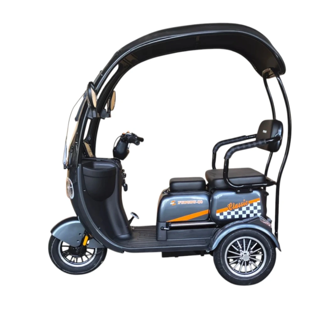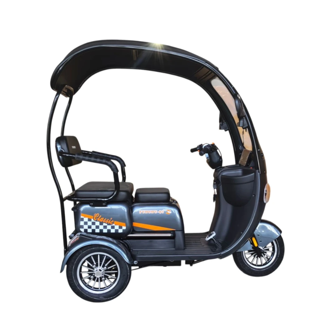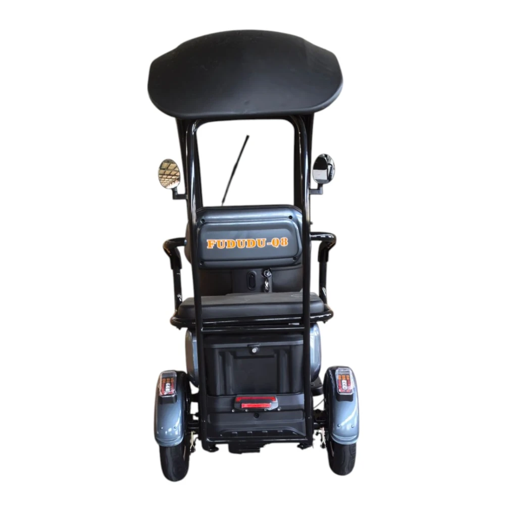Электротрицикл FUDUDU Q8 имеет прочную стальную раму, что гарантирует его долговечность и устойчивость. Максимальная нагрузка до 300 кг позволяет использовать его как для индивидуальных поездок, так и для перевозки пассажиров или грузов. Заднее сиденье и передняя корзина обеспечивают дополнительный комфорт и удобство в использовании.