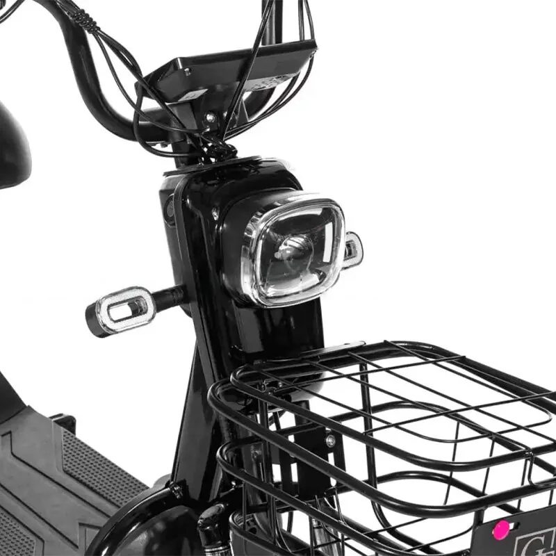 Дополнительные функции, такие как корзина для хранения и зеркала, добавляют практичности и удобства в использовании. Дисплей на руле позволяет следить за основными параметрами, такими как скорость и уровень заряда, что делает управление скутером еще более удобным.