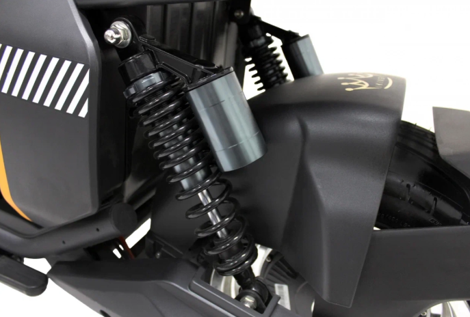 Электроскутер оснащен гидравлическими тормозами, которые обеспечивают надежное и эффективное торможение. Это особенно важно в условиях городского движения, где требуется быстрая реакция. Гидравлическая система торможения гарантирует, что вы сможете остановиться быстро и безопасно в любых условиях.