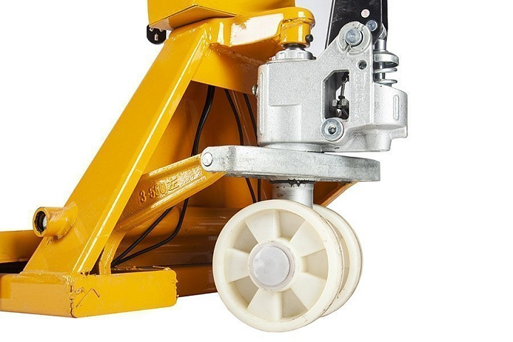 Гидравлическая система тележки обеспечивает плавное и легкое поднятие и опускание грузов, что значительно упрощает работу с тяжелыми предметами и минимизирует риск травм при их перемещении.