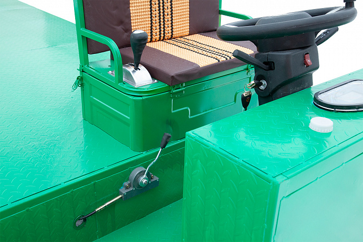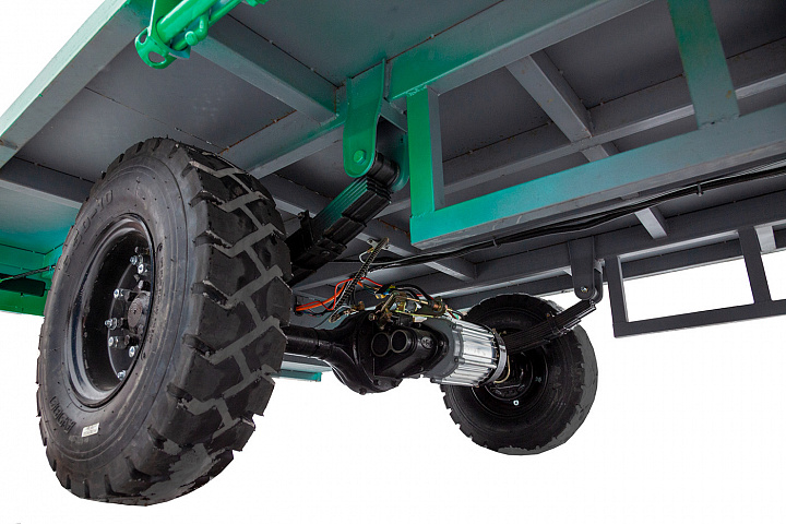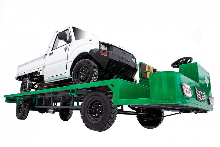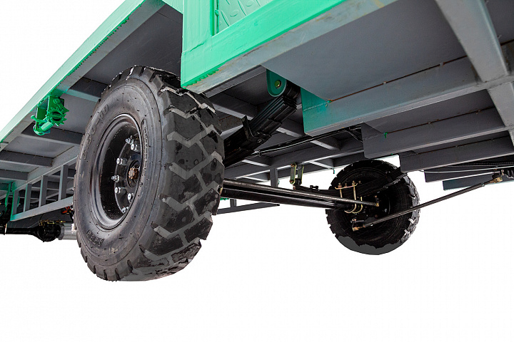 Тележка имеет габариты 5000×1800×1200 мм, что обеспечивает достаточную площадь для размещения крупных грузов. Сухой вес в 450 кг и колеса размером 6.50-10 гарантируют отличную устойчивость и проходимость на различных поверхностях, что особенно актуально в сложных условиях эксплуатации.