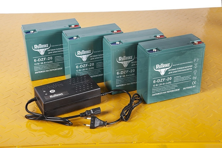 Тележка оснащена тяговыми аккумуляторными батареями емкостью 20Ah, что обеспечивает пробег до 30 км на одной зарядке. Сухой вес устройства составляет 78 кг, что делает его достаточно легким для маневрирования при высокой прочности и надежности.