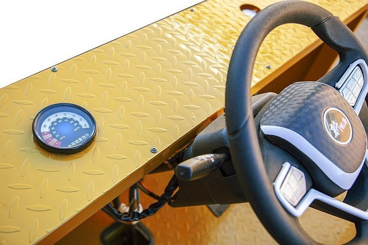 Габариты тележки составляют 3000×1500 мм, а размер грузового отсека — 2350×1500 мм, что предоставляет достаточно пространства для перевозки различных грузов. Колеса размером 5.00-8 обеспечивают отличную устойчивость и маневренность, что особенно важно в ограниченных пространствах.